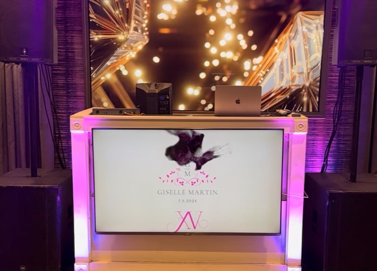 DJ TV BOOTH CUSTOM MONOGRAM FOR YOUR EVENT